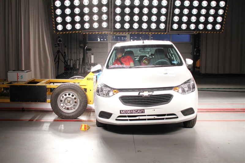 El Chevrolet Nuevo Aveo, producido en China, obtuvo dos estrellas para Protección Ocupante Adulto y cuatro estrellas para Protección Ocupante Infantil. El Nuevo Aveo, con dos bolsas de aire frontales como equipamiento estándar, ofreció protección buena para cabezas y cuellos de los ocupantes adultos y protección débil en el pecho del conductor en impacto frontal y protección marginal a buena en el impacto lateral, incluso sin bolsas de aire laterales. Latin NCAP espera que Chevrolet ofrezca desempeños más robustos evitando asi situaciones límites en cuanto a la protección de ocupantes adultos. Este modelo ofrece como estándar Aviso de Cinturón de Seguridad (SBR) únicamente para el asiento del conductor pero no cumple con los requerimientos de Latin NCAP en relación al volumen de la señal de advertencia en algunas de sus versiones. Como los SBR son fundamentales para mejorar la tasa de uso de los cinturones de seguridad en América Latina, y al ser el cinturón de seguridad el principal sistema de retención en el vehículo, el desempeño del SBR explica la baja puntuación en la protección de ocupantes adultos. Chevrolet está trabajando para mejorarlo y Latin NCAP informará tan pronto como esto se realie en todos los Nuevo Aveo en producción.
