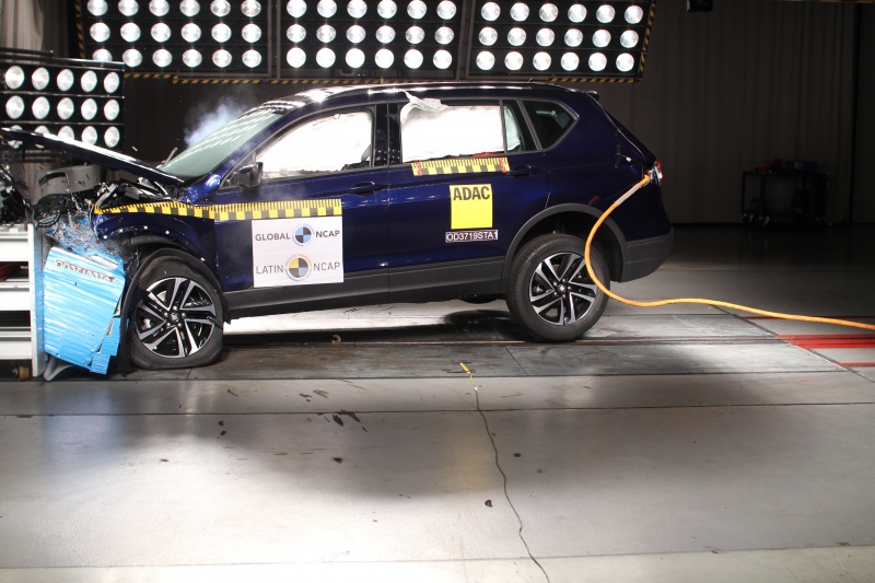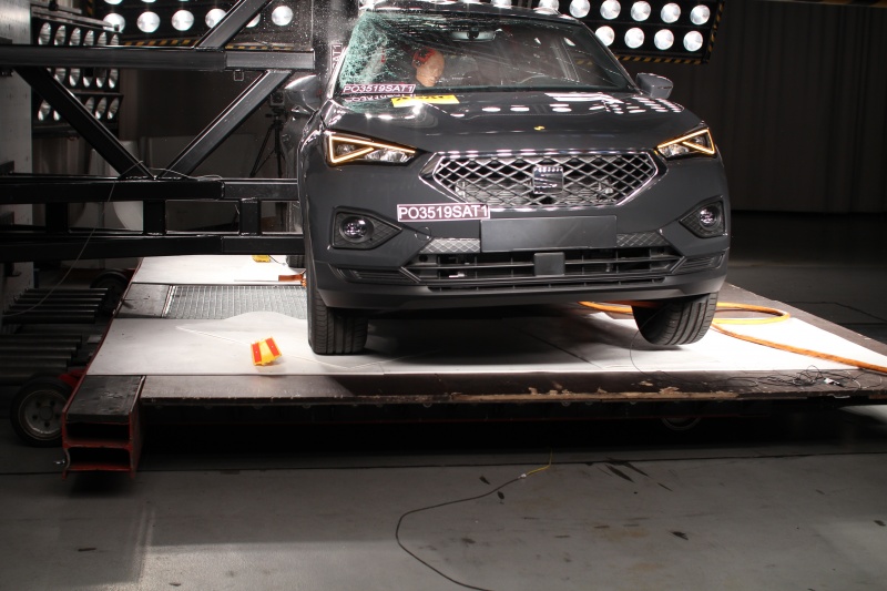El recientemente lanzado SEAT Tarraco, producido en Alemania, alcanzó cómodamente la calificación máxima para Protección Ocupante Adulto y para Protección de Ocupante Infantil y fue premiado además con dos Latin NCAP Advanced Awards por Protección para Peatones y Frenado Autónomo de Emergencia (AEB). La nueva SUV de SEAT equipada con siete bolsas de aire como estándar: tres frontales, dos laterales de cuerpo y dos de cortina y Control Electrónico de Estabilidad (ESC), logró un resultado sólido de cinco estrellas para adultos y cinco estrellas para protección de niños, con una estructura estable. Durante el test de impacto lateral la puerta delantera se abrió, lo que llevó a la reducción de un punto en la puntuación total, pero igualmente alcanzó cómodamente las cinco estrellas. No es de esperarse que se abra la puerta del vehículo durante el impacto lateral en un modelo que aprueba el test de la Regulación UN95 de impacto lateral de Naciones Unidas. La Protección de Ocupante Infantil fue buena con protección limitada al pecho el dummy de 3 años que podría ser optimizada si se colocara el Sistema de Retención Infantil de tres años mirando hacia atrás. El Tarraco ofrece Protección para Peatones como estándar y de acuerdo a las Regulaciones de las Naciones Unidas, obteniendo el reconocimiento Latin NCAP Advanced Award por esta característica. El modelo obtuvo un segundo Advanced Award por la disponibilidad de forma opcional de AEB.