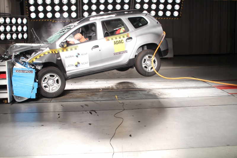 El Renault New Duster, fabricando en Rumania, Brasil y Colombia alcanzó cuatro estrellas para Protección de Ocupante Adulto y tres estrellas para Protección de Ocupante Infantil. La nueva versión del popular modelo de Renault ofrece como equipamiento estándar dos bolsas de aire frontales y Control Electrónico de Estabilidad (ESC). La estructura fue considerada como inestable durante el impacto frontal y no puede soportar mayores cargas. En el impacto lateral, la estructura sufrió una alta penetración que no es de esperarse en una versión nueva de un modelo. Ambas cabezas de los dummies infantiles tuvieron contacto con la parte interior del vehículo durante el impacto, lo que aumenta la probabilidad de lesiones. El New Duster ofrece anclajes ISOFIX y Top Tether como estándar en las dos posiciones traseras externas y, además ofrece Aviso de Cinturón de Seguridad (SBR) en ambos asientos delanteros. El dummy de tres años fue instalado con anclajes ISOFIX y Top Tether, mientras que el dummy de 18 meses fue instalado mirando hacia atrás utilizando el cinturón de seguridad del adulto. El New Duster ofrece la posibilidad de desconectar la bolsa de aire del acompañante de forma manual. El New Duster fue probado en la versión Rumana que se importa principalmente a Chile. Las versiones fabricadas en América Latina serán auditadas apenas estén disponibles y serán publicadas.