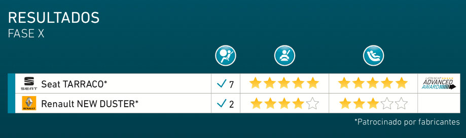 Últimos resultados de Latin NCAP: Seat completa su flota de cinco estrellas mientras que New Duster renueva las cuatro estrellas