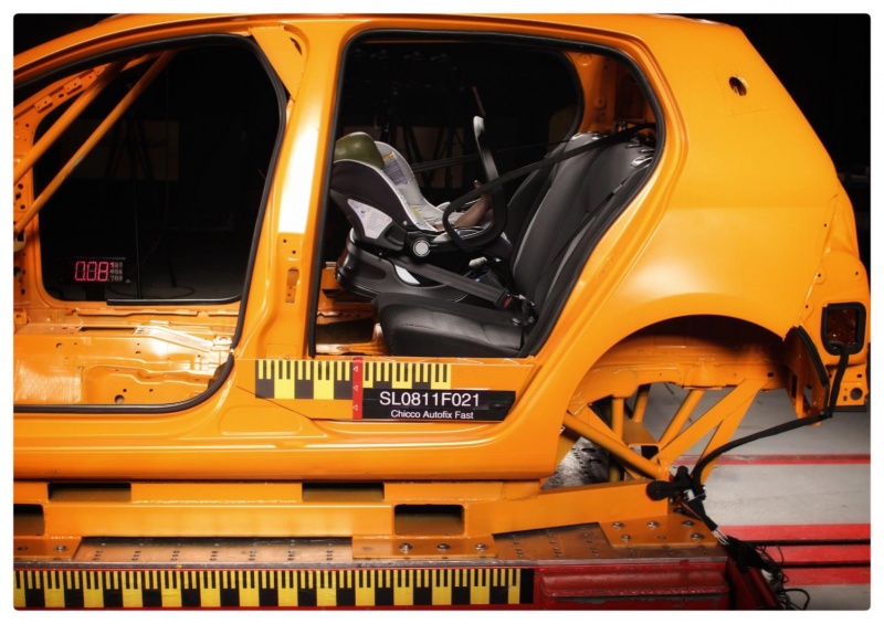 En las pruebas dinámicas se registró un SRI (D´bebe Confort) con cargas elevadas junto con movimientos indeseables del dummy y el colapso de la estructura completa del SRI dejando al dummy suelto durante la prueba. El resultado de esto es un riesgo alto de lesiones que llevó al puntaje bajo de una estrella para este SRI.